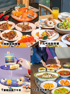 双节团圆少不了美食相伴:10月1日至8日,自助早餐每日延长至11:00,让元气美食唤醒慵懒假日;10月1日-10月7日主厨为食客们带来意大利海鲜自助晚餐,呈现多款意式风味料理及现切烤肉、琳琅满目刺身海鲜、粤式风味、环球美食、意大利甜品等佳肴燃动味蕾,畅享假日欢聚。;二楼花田湾中餐厅品悦广式早茶与精致粤菜,让粤味与团圆撞个满怀!
