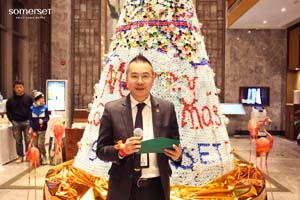 雅诗阁·合肥、徐州、扬州城市总经理孙伟先生登台致辞,他向各界朋友长久以来的支持表示感谢,并阐释了本届圣诞季的核心主题——在欢庆中践行可持续理念,用行动“环”抱社区与环境,让节日的喜悦与地球的美好未来相连。