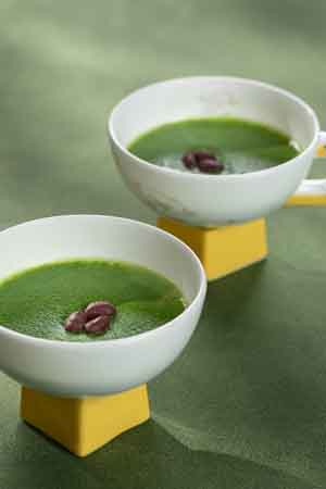 “艾叶红豆姜汁双皮奶” 为春日飨宴画上圆满句点。双皮奶源自顺德大良百年非遗工艺,潘师傅以水牛奶为基底,蒸出柔滑醇厚的双皮奶,融入温辛姜汁提香暖胃,顶层铺爆珠红豆增添口感,再以艾叶汁调染出春日翠色。姜香温润、艾草清幽、红豆清甜,一勺入口,绵密嫩滑,尽享春日里的温润。