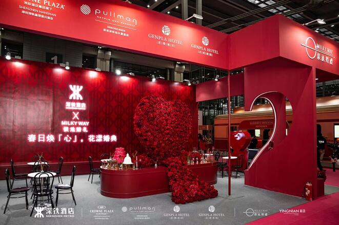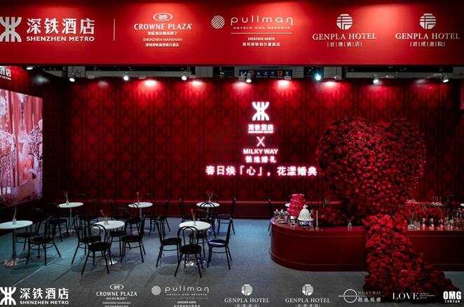 ,在婚博会期间吸引众多宾客目光,纷纷驻足停留拍摄。在为期2天的婚博会活动现场,深铁酒店专业厨师团队特献婚礼主题甜品,经验丰富的婚宴销售团队为往来宾客展示各具特色的婚宴场地、精心缔造多重婚典礼遇、别具匠心的餐饮出品以及提供专业周到的咨询顾问服务。体现了深铁酒店作为美好生活运营商,为即将步入人生新旅程的宾客打造沉浸式的品牌体验与匠心铭刻的浪漫篇章。深铁酒店旗下深圳深铁皇冠假日酒店、深圳深铁铂尔曼酒店、深圳深铁塘朗城君璞酒店三家在营酒店项目,凭借其高端硬件设备及专业高效服务理念赢得宾客的赞誉,获得了良好的市场口碑,也让深铁酒店在婚宴市场上大放异彩。