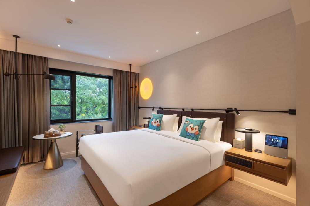 “风”则代表着让所有宾客感受如沐春风的高品质服务,既包含了传统待客之道中的热情周到,也体现了现代生活的便捷性与科技感。配置百年历史品牌卫浴系统、全屋智能客控系统、配备国际品牌洗护用品、原生态的裸棉材质床品,搭配优质睡眠枕和天然乳胶床垫,为爱熬夜的年轻人打造深度睡眠体验,以优质的产品给予宾客既舒适又充满惊喜的入住体验。