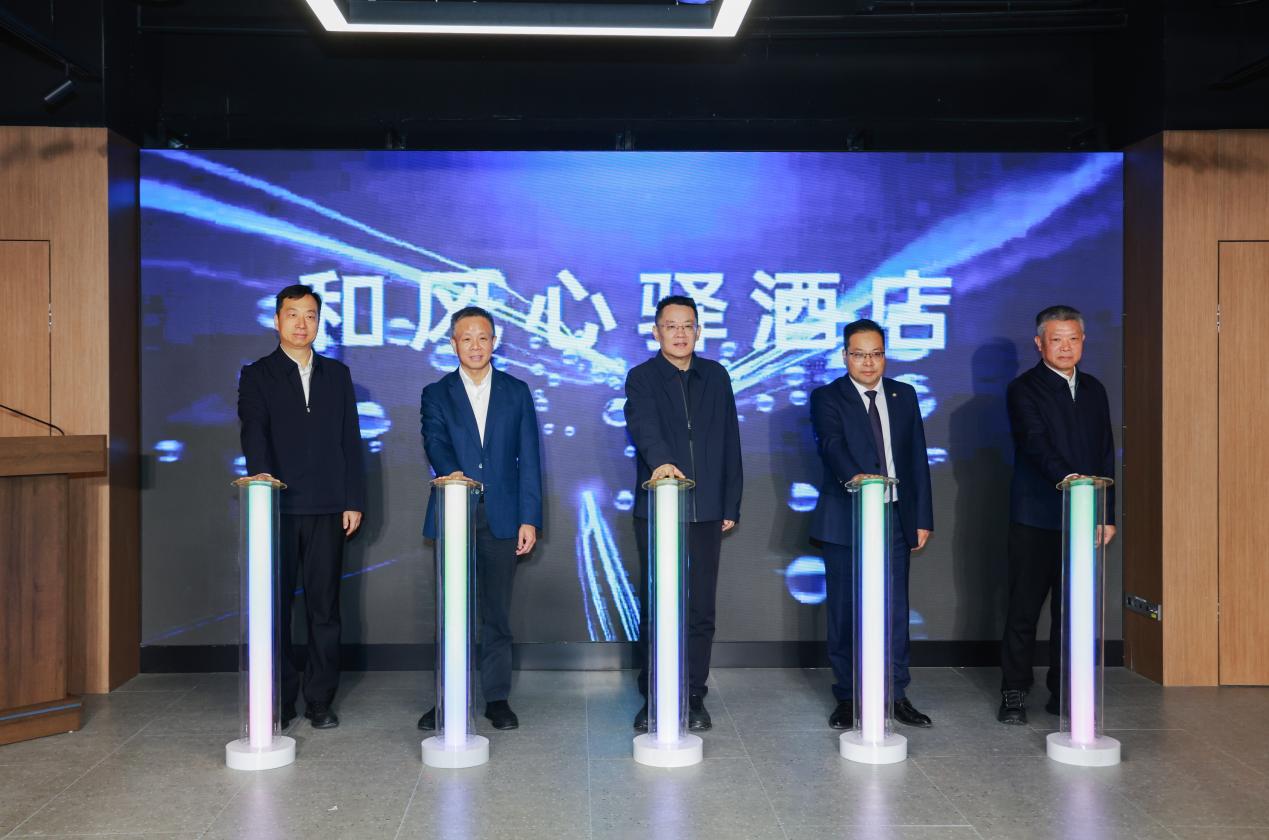 随后,京能集团党委书记、董事长姜帆,京能集团副总经理贾法彬,京煤集团党委书记、董事长何孔翔,京煤集团党委副书记、总经理勘立军,中旅酒店董事、总经理周建辉共同登台,一同揭开城市度假酒店新品和风心驿品牌的序幕。