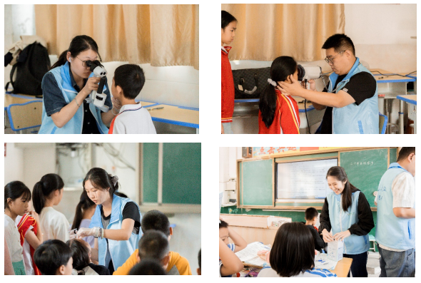 慈善团队共近20人,两日的行程分别前往上杭县通贤中心小学和永定县下洋镇中心小学,先后为1,300名和1,024名学生检查视力。经过视力初筛、散瞳、计算机验光、插片验光等环节,为视力较差学生配送眼镜。珠海凤凰湾悦椿酒店作为本次活动的支持单位,赞助2,400份学生写字座姿矫正器,为学生宣传正确的学习姿势,对保护眼睛健康的重要性,呼吁学童要时常注意学习姿势和光线等,有助学生远离近视,迈向精彩未来。