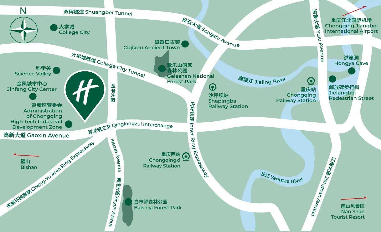 重庆科学会堂假日酒店,坐落于西部(重庆)科学城核心地带,紧邻中国重庆·科学会堂,周边交通便捷,靠近科学大道及多条城市快速路。酒店通过内环高速可直达重庆江北国际机场和重庆西站,便于探访如磁器口古镇、大足石刻等著名景点,让宾客尽享重庆的地理奇观和悠闲的都市生活节奏。