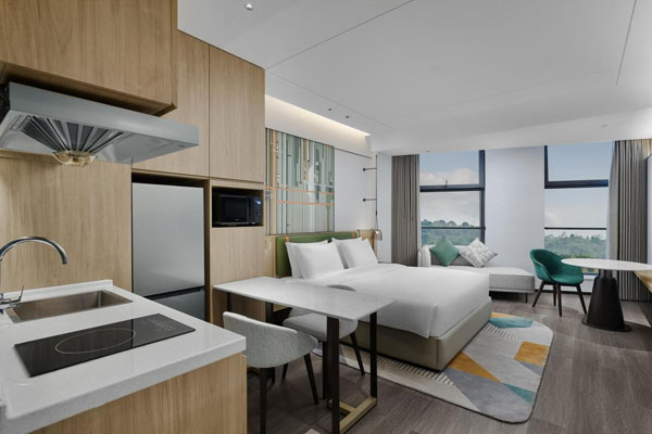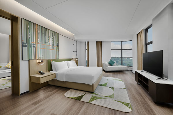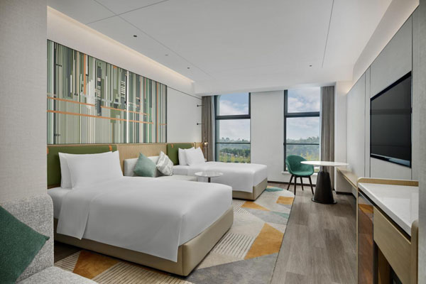 酒店拥有412间设计现代、环境温馨的客房,包括特色酒店公寓式客房及套房,旨在满足不同宾客的住宿需求。所有客房均配备现代化设施和高品质的床上用品,同时为满足现代旅行者的旅居需求,设有便捷投屏和软硬双枕等个性化设施用品。此外,酒店延续以“家庭友好”的品牌特质,特别设置了“微笑吧!外星小神兽主“题亲子房及“儿童食宿欢乐尽享”的礼遇,确保家庭宾客的多元化需求得到满足,同时营造充满奇幻与童趣的氛围。