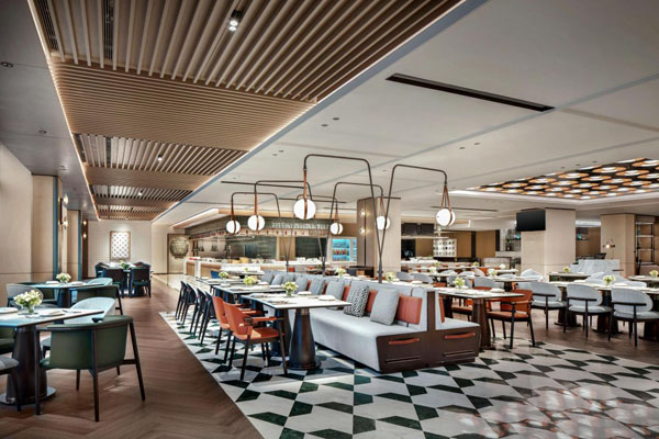 酒店的幻彩全日餐厅提供环球美食精粹,大堂酒廊则以雅致宜人的环境,为宾客营造一处休憩放松的悠闲空间。