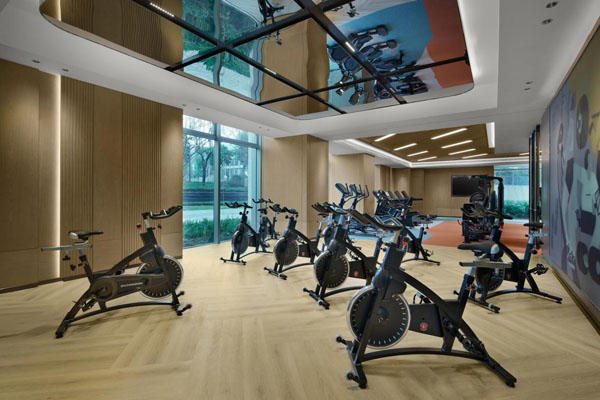 24小时开放的健身房配备动感单车等多种健身器材,并采用全景玻璃窗设计,打造一方明亮舒适的动感天地。
