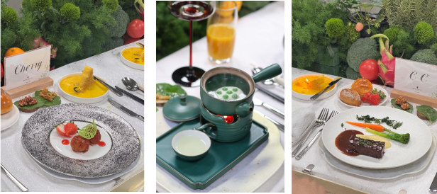 蔬苑派对菜单由酒店主厨团队匠心独运,遵循JW万豪全然焕活的品牌理念,运用巧思创新,悉心精选本地食材,如山西运城的莲藕、山西汾阳的琥珀核桃、山西孝义的牛心柿子、山西吕梁岚县的土豆等,结合 JW 蔬苑所种植的香料与原料,巧妙地将自然之美与在地食材相融合,完美诠释了“从蔬苑到餐桌”的饮食理念。
