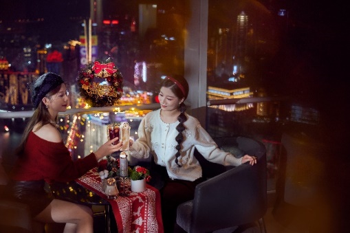 于吧62俯瞰两江交汇魔幻夜景,享受云端微醺暖意。吧62精美呈现圣诞系列鸡尾酒,烤棉花糖、冬日序曲、热红酒等具代表性的圣诞饮品提供多样选择,酸甜交织的味道带来舌尖醇厚的口感,相聚云端,沉浸于圣诞馥郁佳酿,感受节日的愉悦。