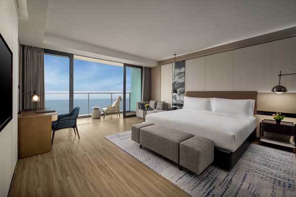酒店拥有207间摩登雅致的客房及套房,值得一提的是,近80%的客房面朝大海,可在阳台上欣赏唯美日落。完善的客房设施和精心设计的空间,让客人专注高效地投入工作之余,拥有一段悠闲放松的时光。