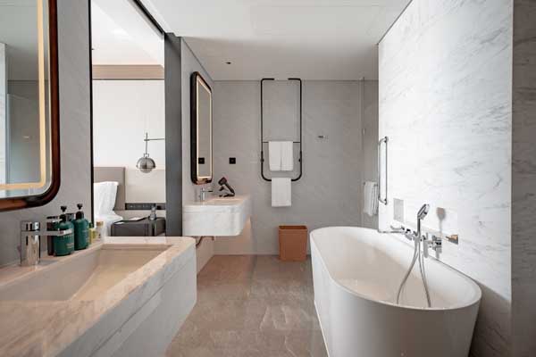 客房充分考虑商务旅客的需求,打造灵活多变的空间,为旅客带来非同寻常的空间体验。其中部分房型盥洗室配备欧舒丹洗护及戴森吹风机,让宾客在沐浴时享受身心的充分放松。