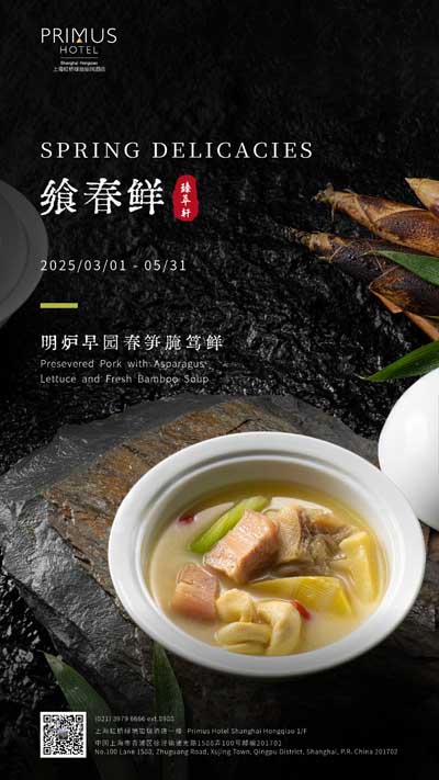 无论是新鲜的时令菜肴,还是蕴含美食文化的传统甜品,均是大厨们匠心打造的佳品。上海虹桥绿地铂瑞酒店臻萃轩中餐厅诚邀您品尝这场春日美食盛宴,感受大自然馈赠的绝妙滋味。