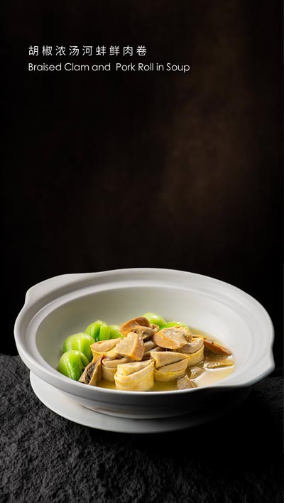 臻萃轩中餐厅的行政主厨雷志军凭借对春季食材的深刻理解,巧妙地将时令食材融入每道菜肴。明炉早园春笋腌笃鲜则让人倍感惊喜,鲜嫩的春笋与腌笃鲜的独特风味相结合,充分展现了春季的鲜活与丰盈。胡椒浓汤河蚌鲜肉卷也别具风味,河蚌的鲜嫩搭配胡椒的微辣,带来层次丰富的味觉享受,仿佛一口就能让人感受到大海的味道。刀板香黄鳝蒸早园春笋则是另一道不可错过的美味,黄鳝的鲜美与春笋的脆嫩相互融合,蒸制后的美味散发出诱人的香气,令每一口都充满了春天的气息。