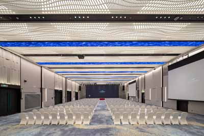 酒店打造建面约2,400㎡灵动会议空间,包含8个高端宴会场所及1个虚拟演播厅,设计典雅大方,配备先进视听设施,如虚拟演播厅,内置调音台、调光台、录制提词器、专业拍摄摄像机等设备;更有80㎡超清4K LED主屏的伊敦宴会厅,以全场景适配,满足贵宾接待、婚礼庆典、商务会议、产品发布、培训讲座等需求。