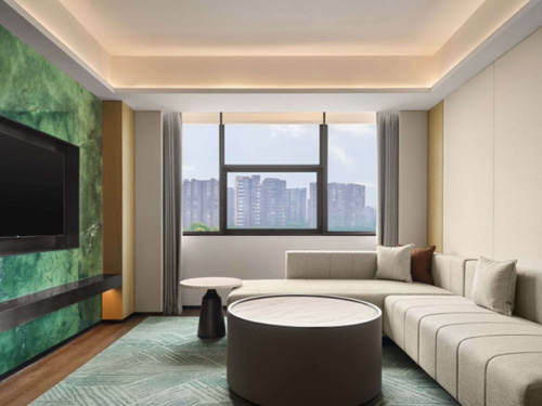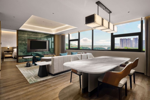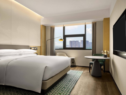 酒店公区设计巧妙融入岭南园林建筑的窗格、屏风等元素凸显本地特色。温暖舒适的中性色,搭配传统灰塑工艺中极具辨识度的青绿色点缀其间,呈现活力热忱、简洁明快的质感。酒店拥有138间优雅舒适的现代化客房及套房,融入岭南水乡设计元素,打造舒适自在的休憩空间。客房均配备高品质床品、免费高速无线网络、高清液晶电视等现代化设施,灵活便利的工作与休闲空间满足宾客商务与休闲的多元需求,于房内还能远眺城市景观或观赏怡人河景,静享惬意时光。