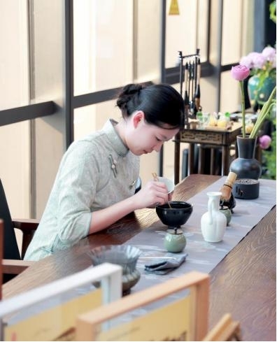 河北省非物质文化遗产芦苇画代表性传承人杨丙军现场创作白洋淀芦苇画,指尖苇丝在光影中勾勒雄安生态图景;茶艺师演绎宋代点茶技艺,茶筅击拂间泛起雪沫乳花,共同为这场味觉盛宴揭开序幕;东方舞者 “翩若惊鸿” 的水袖舞姿、琵琶弦上流淌的《春江花月夜》,化作味觉间奏。
