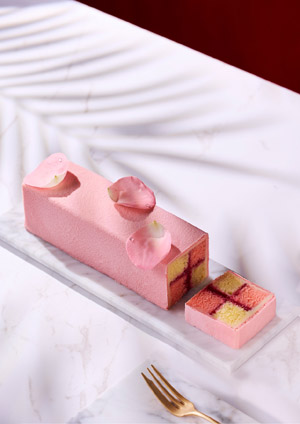 朗廷纪念版巴腾堡蛋糕(Langham Battenberg Cake):以经典英式下午茶甜点为蓝本,重新演绎品牌起源,并融入全球主厨创意演绎