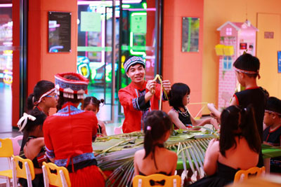 跃动民俗风情滩: 跟随竹竿清脆的节奏,在欢笑中挑战竹竿舞的灵动步伐,感受海岛文化的热情魅力。