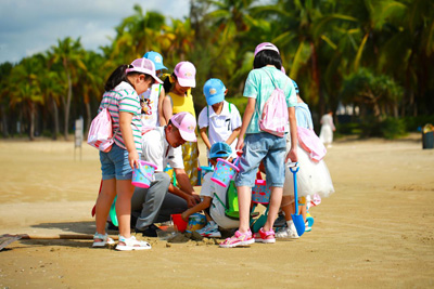 自然探索小纵队: 深入"椰宝宝成长记",亲手触摸椰树生命的脉动;化身沙滩小侦探,追寻退潮后螃蟹留下的秘密踪迹。