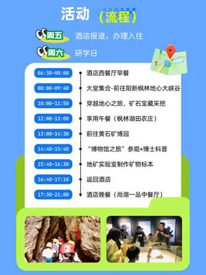 08:00-11:50 前往阳新枫林地心大峡谷,开启挖宝之旅~钻溶洞、找矿石,小朋友变身 "小矿工" !