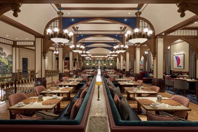 汉普阁由伦敦室内建筑及设计工作室BradyWilliams设计,灵感源于令人叹为观止的英国汉普顿宫(Hampton Court Palace)。汉普阁的设计重点是私人会所的氛围,通过华丽的宝石色调、黄铜制品及奢华织物,共同打造出优雅、惬意及温馨的空间。整个空间让宾客仿佛走进了一段充满盛世光芒的历史旅程,体验奢华且尊荣的专属会所体验。