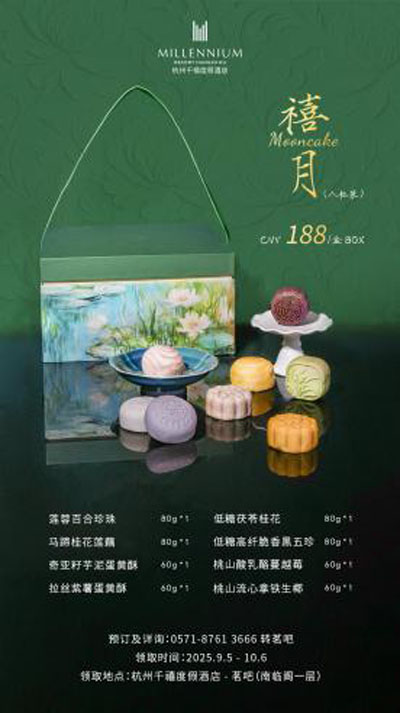 “小饼如嚼月,中有酥与饴。”中秋佳节将至,杭州千禧度假酒店臻呈「禧月」礼盒,愿明月映长空,美好与君共。