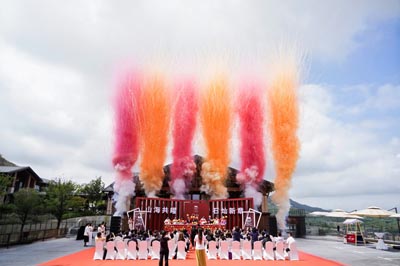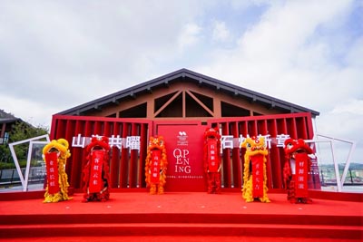 在传统舞狮点睛环节,各位代表执笔为祥狮点目,寓意吉祥兴盛。紧随其后的剪彩活动由9位嘉宾共同完成:宣告青岛石灿酒店,希尔顿格芮精选正式投入运营。