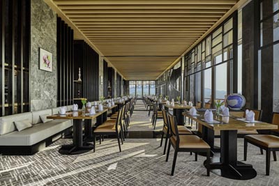 餐饮方面,石韵中餐厅以"石的印记,味蕾的蜕变"为理念,主打青岛本地特色菜及粤菜融合菜。主厨团队凭借20余年匠心技艺,严选优质食材,将经典粤菜与胶东风味完美融合。餐厅设有8个私人包间,是亲友欢聚和商务宴请的理想之选。霞谷全日制自助餐厅坐拥龙斗山全景视野,提供百余种美食佳肴,包括现切刺身、海鲜盛宴及地道风味,更有现场烹饪火焰牛胸肉,让宾客在霞光沐浴中享用各国美食。