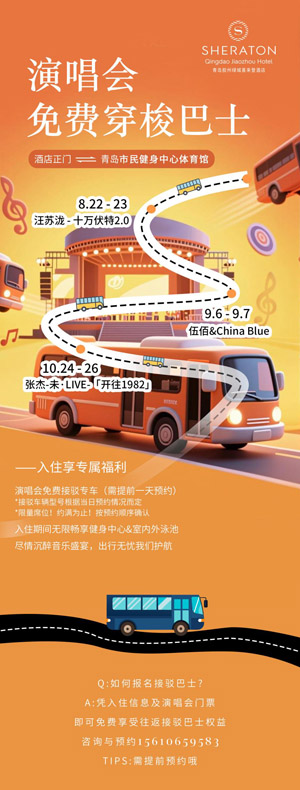 演唱会接驳车预约通道开启 往返无忧 从容观演|青岛胶州绿城喜来登酒店
