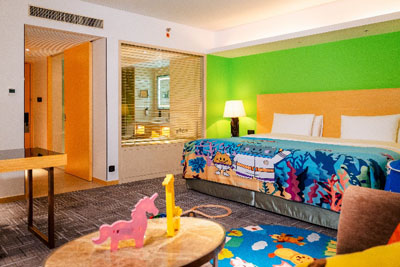 即日起至2025年12月31日,酒店推出的侧江景豪华亲子主题房,售价人民币868元起,配备2.4米超大床,可让家庭旅客在房间内欣赏长江美景和历史风貌区景观。房间不仅进行了充满童趣的主题布置,还为小客人准备了儿童专属的浴袍、拖鞋、洗浴用品等贴心设施。该套餐还包含餐饮礼遇、周末儿童活动及免费加床服务,非常适合需要更多活动空间的家庭。可于酒店官方商城或致电(86 27)8277 8888 预订。