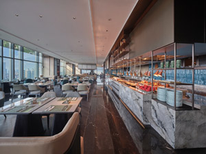 酒店拥有别具一格的餐厅与大堂吧,均坐落于高层位置,宾客可在用餐休憩之余,将城市繁华景致与辽阔天际线一览无余。