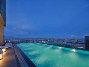 位于酒店顶层的天际泳池,以全景视野拥揽都市繁华。